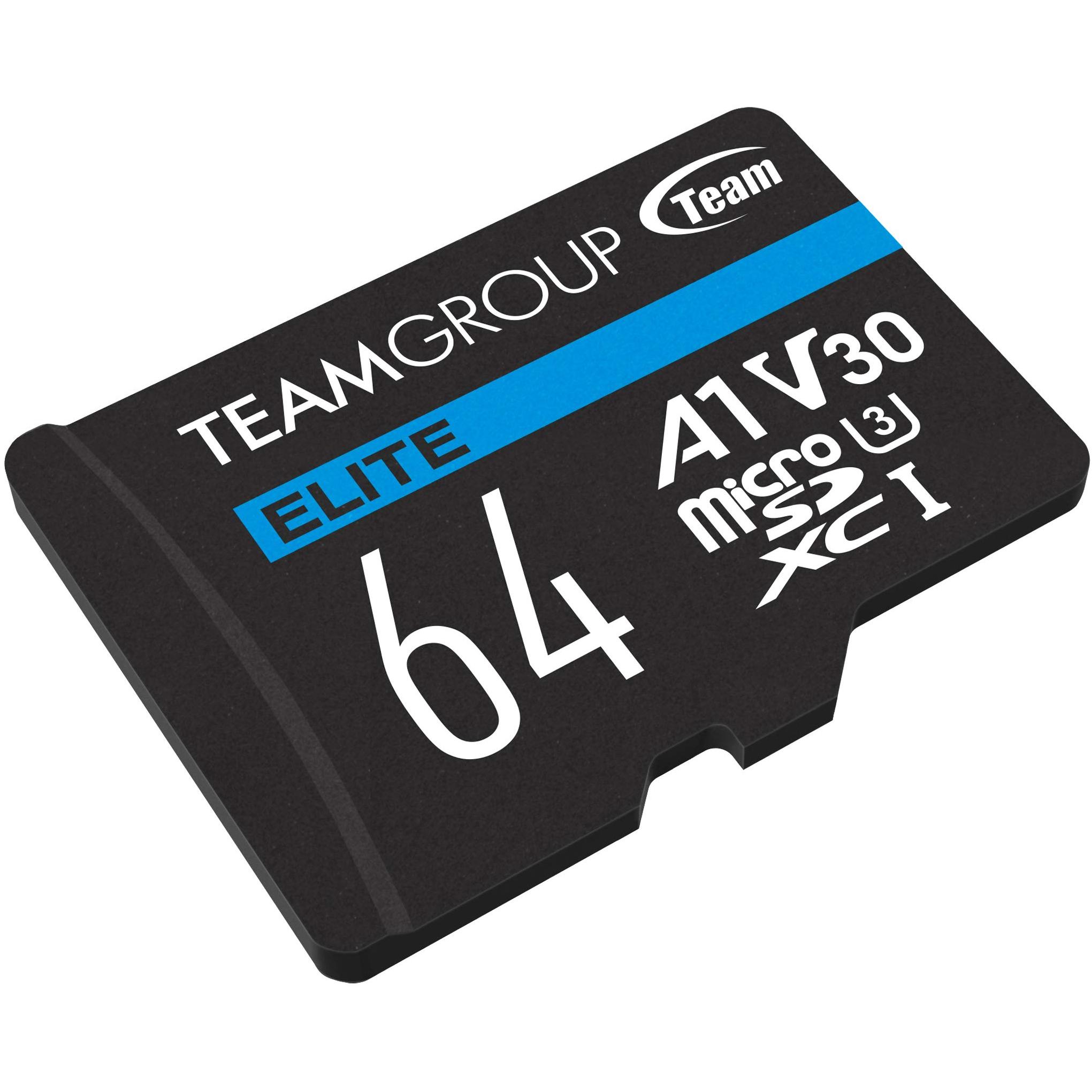 Team Group Team ELITE A1 - Scheda di memoria flash (adattatore SD incluso) (64 GB, microSD, U3, UHS-I), Scheda di memoria, Nero