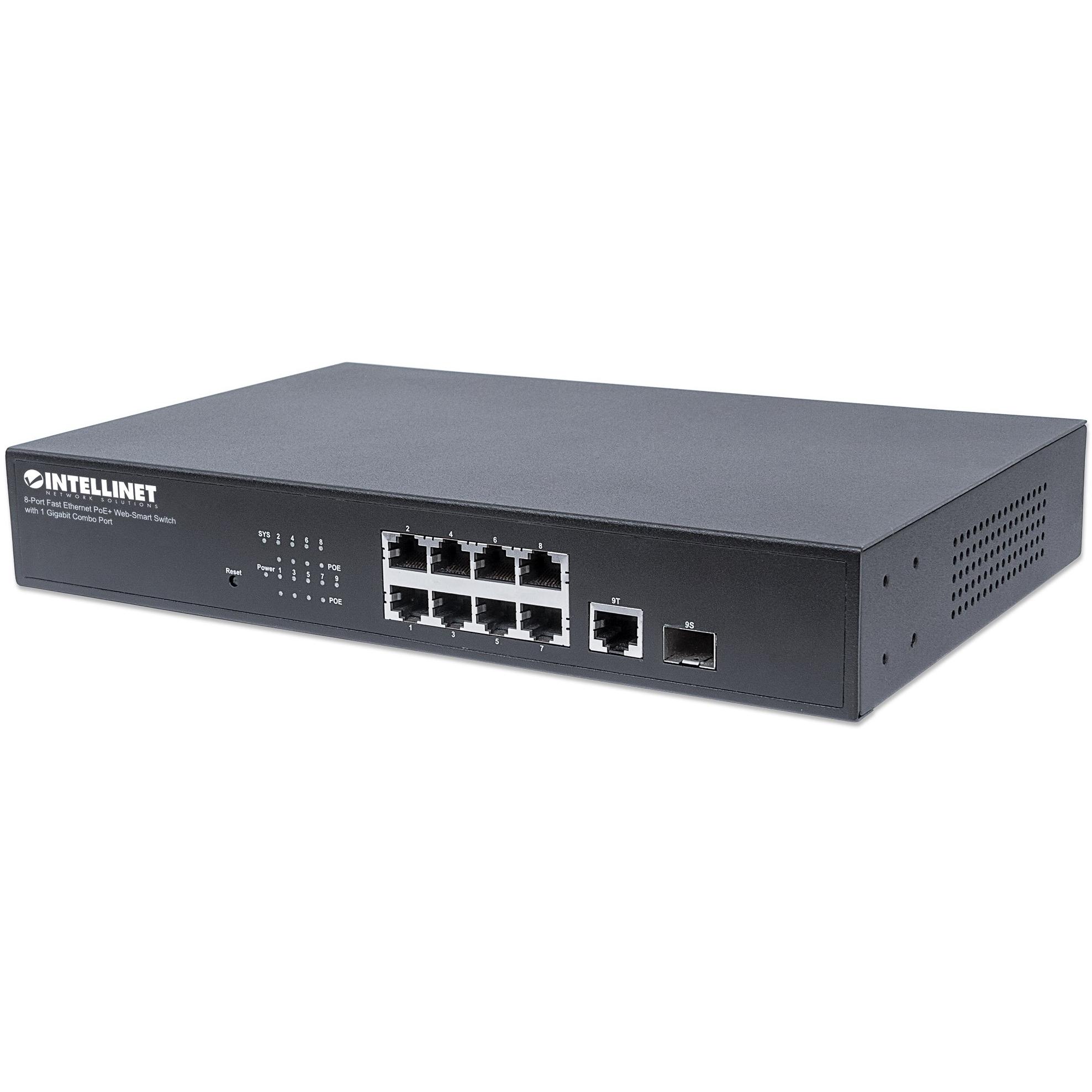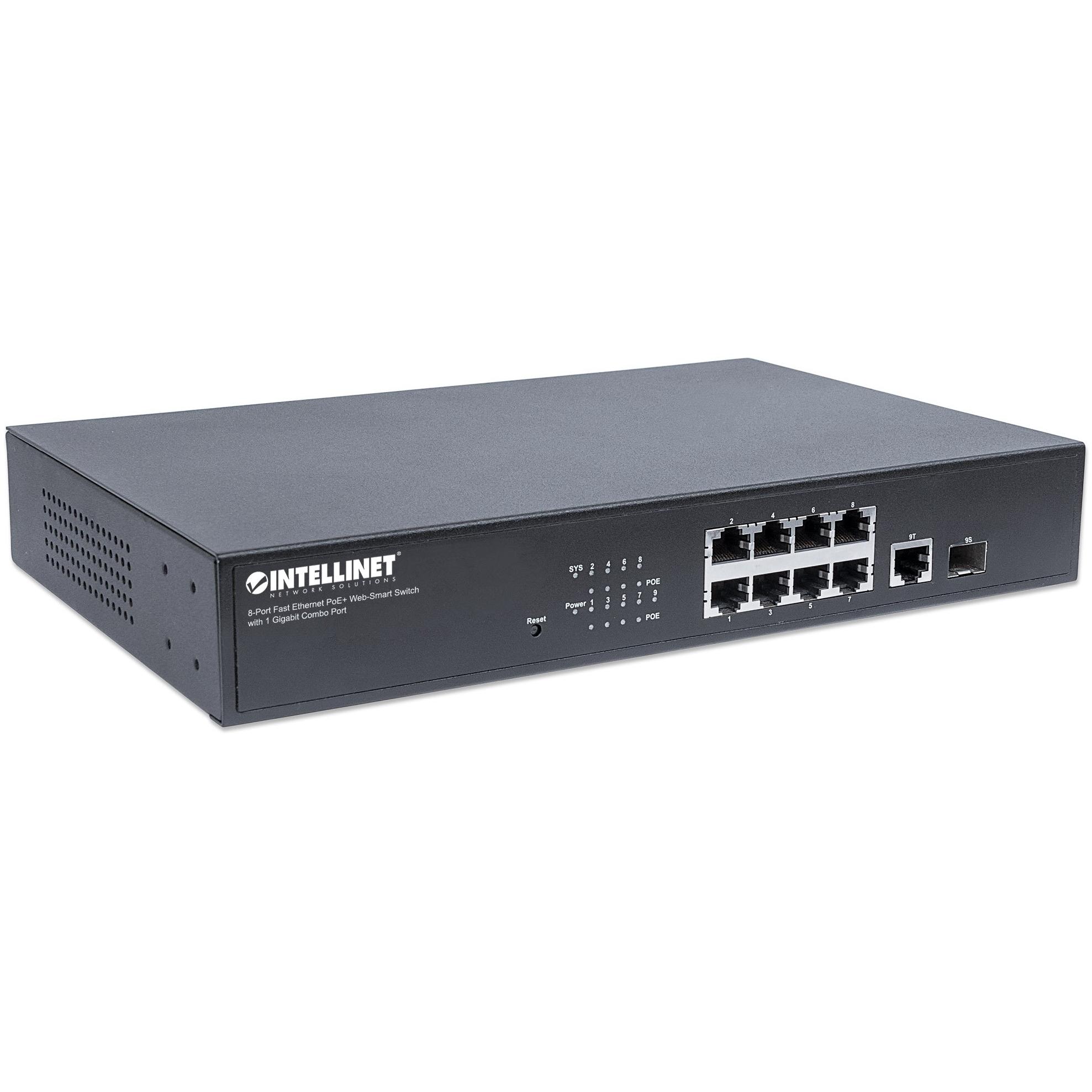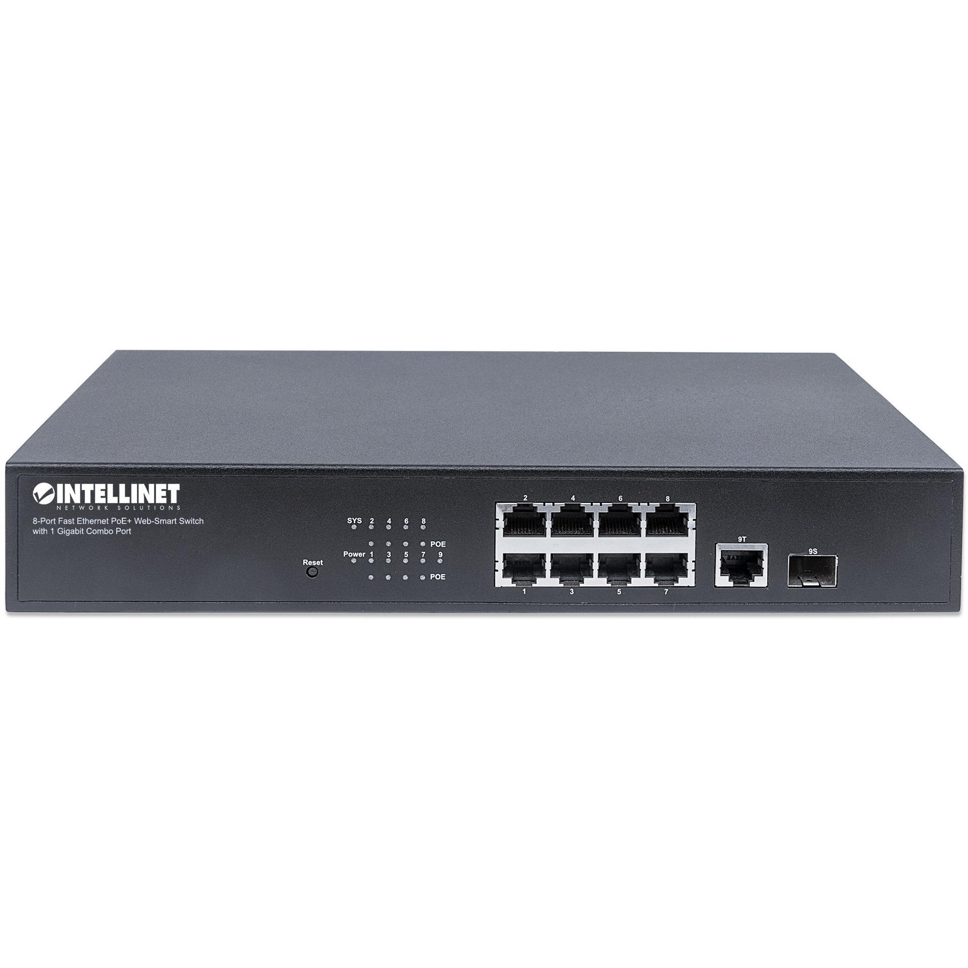 Switch Intellinet 561358 è un interruttore gestito a 8 porte RJ‑45 Fast Ethernet con PoE+ che alimenta telecamere, telefoni IP e altri dispositivi ...