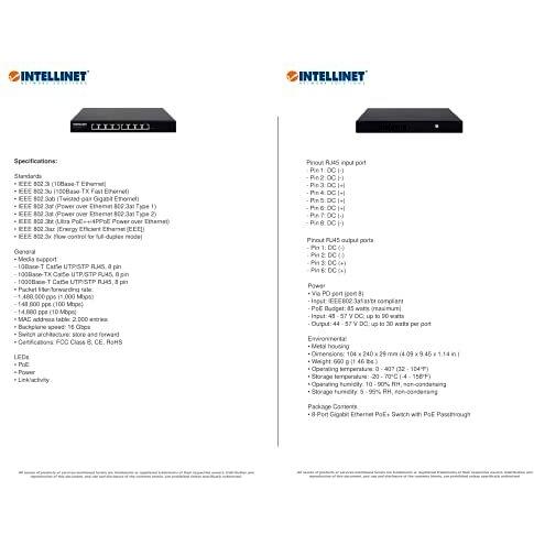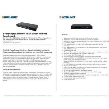 Intellinet 561679 Switch Gigabit 8P PoE+ Pass 561679