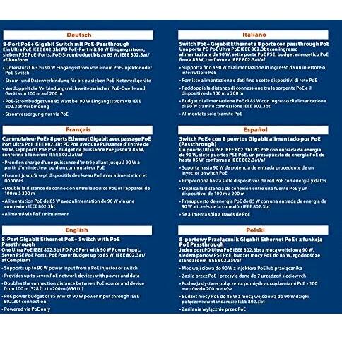 Switch PoE+ Gigabit Ethernet a 8 porte con passthrough PoE