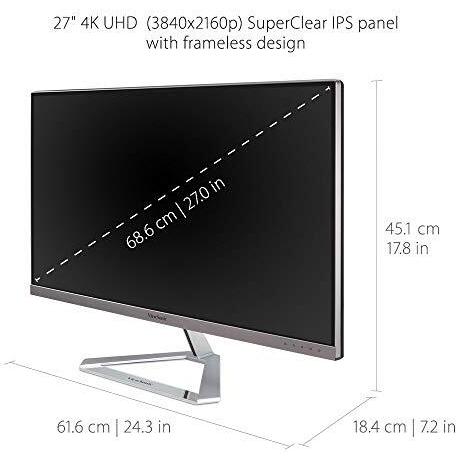 ViewSonic VX2776-4K-MHD 27" 4K Ultra HD Frameless IPS Entertainment Monitor (2160P, 2x HDMI, Displayport, 2x 2.5W Speakers), Silver