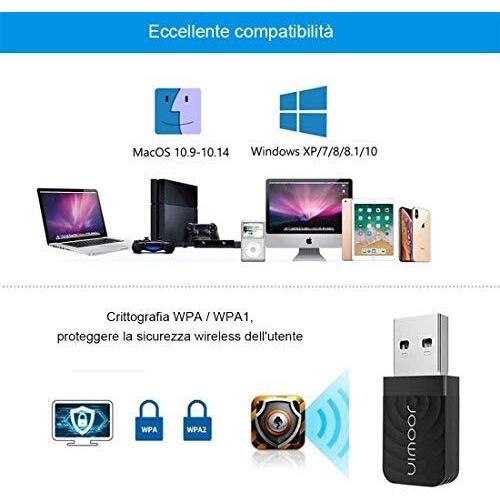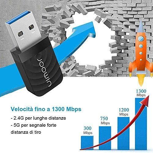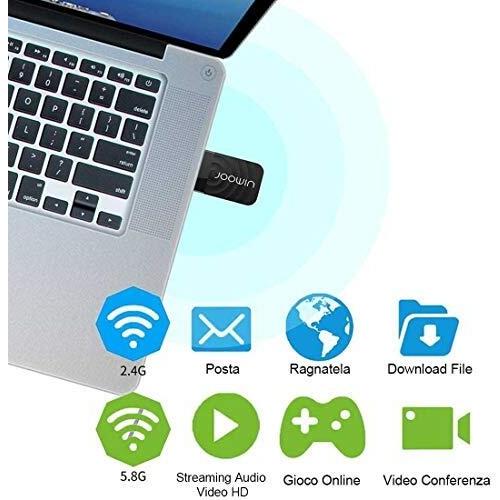 JOOWIN Wireless Network Adapter, Wireless Wifi Dongle, 802.11ac, 1300Mbps, Dual Band (2.4GHz/400Mbps & 5GHz/867Mbps), Mini WiFi USB Key for Windows XP/7/8/8.1/10, macOS 10.9-10.14