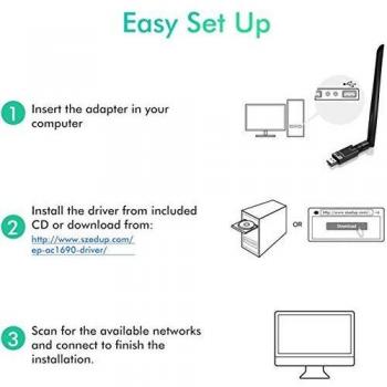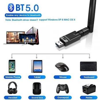 Adattatore USB 3.0 Bluetooth WiFi AC1200Mbps con 6dBi Antenna 2.4G/5Ghz per PC