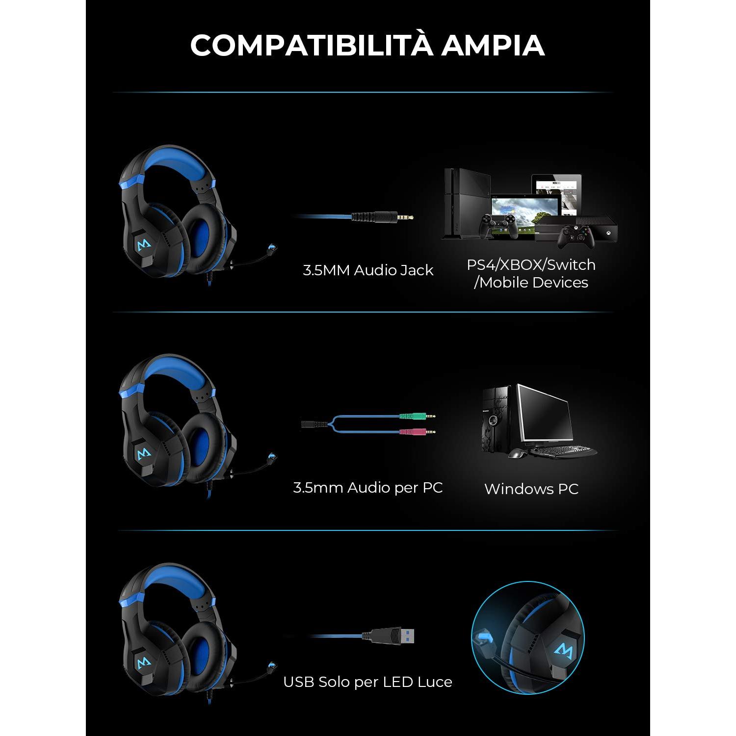 Mpow EG9 RGB Gaming Over‑Ear con Microfono Flessibile