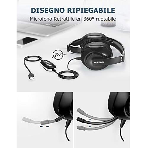 Mpow 224: Cuffie USB/3.5 mm Ripiegabili con Microfono Retrattile