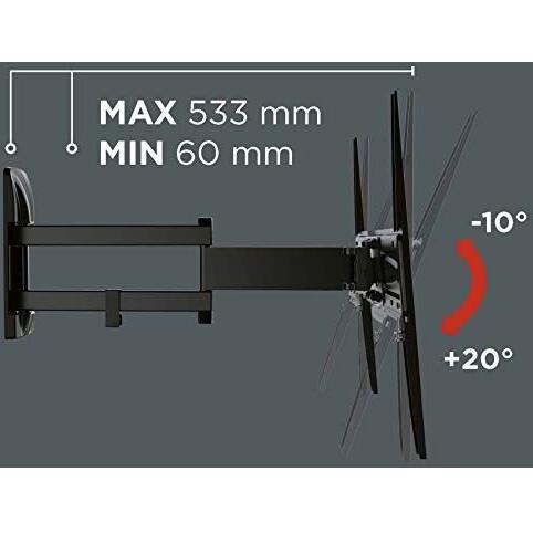 Meliconi Slimstyle Plus 400 Sdr, Wall Mount TV Bracket with Double Arm for Flat Screen TV from 40'’ to 82'’, Black
