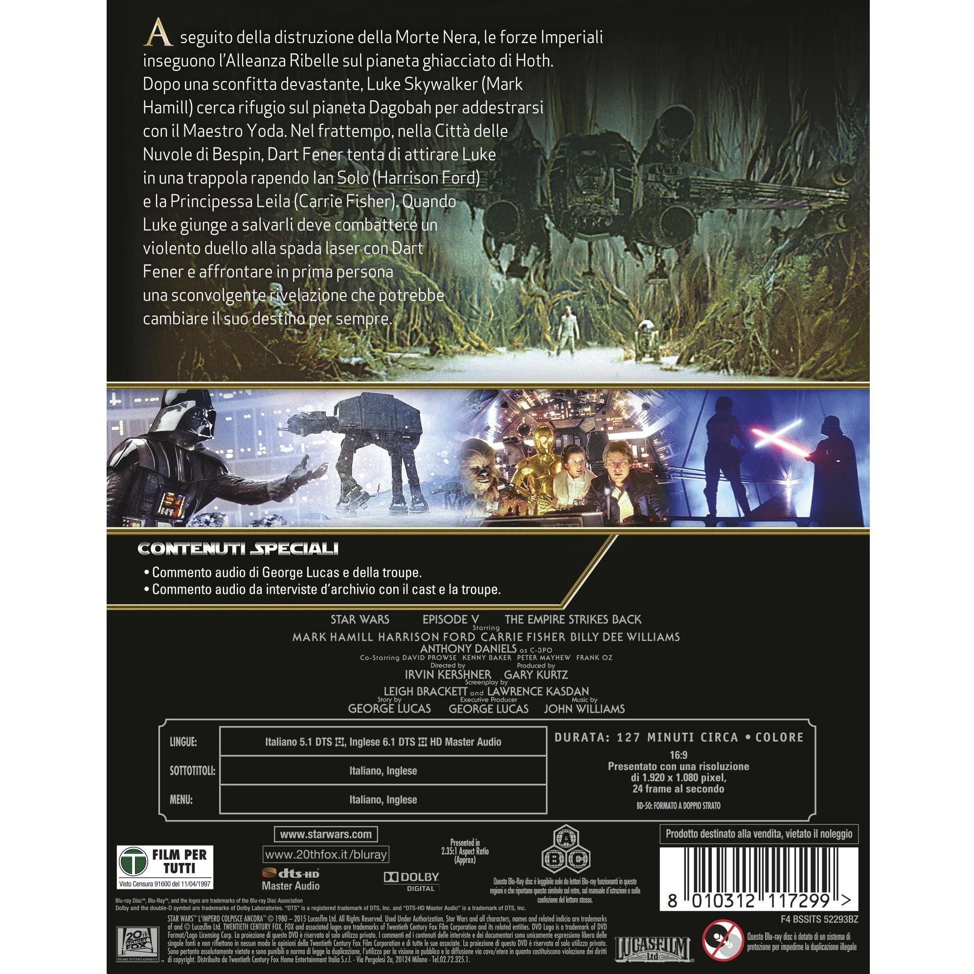 Scopri “Star Wars Ep.5 – L’impero colpisce ancora” in Blu‑ray, con video a 1080p e audio Dolby Digital 5.1 che ti porta al centro della batt ...