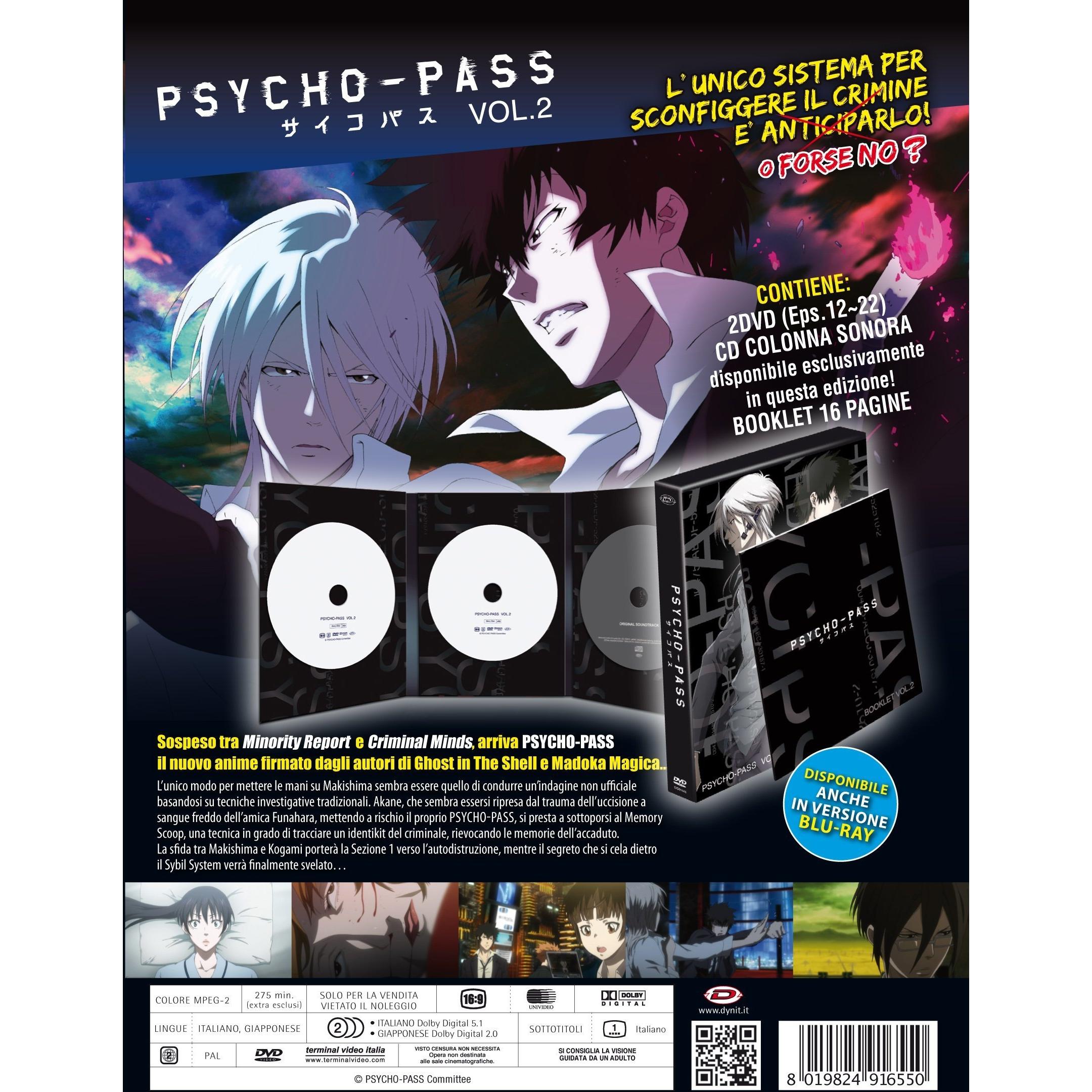 Vivi il culmine di Psycho Pass con il set Blu‑ray Vol. 2: episodi 12‑22 su due dischi, un CD audio e bonus esclusivi come interviste ai creatori ...