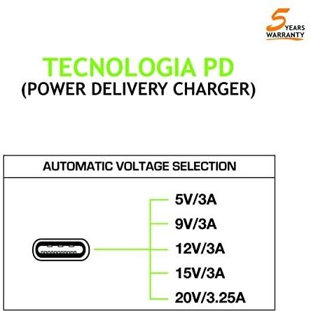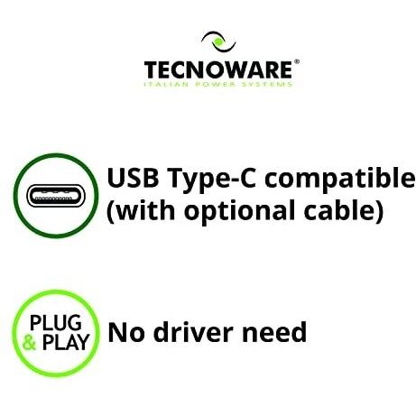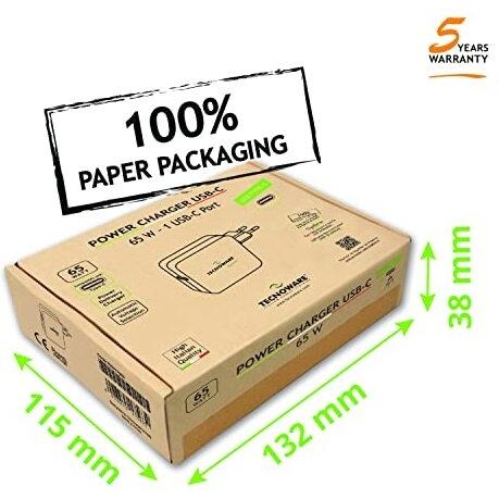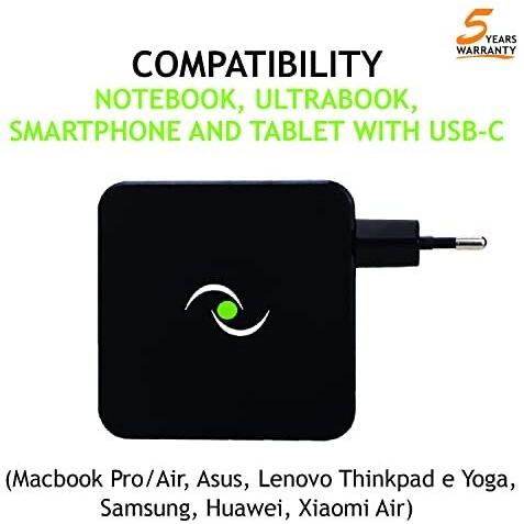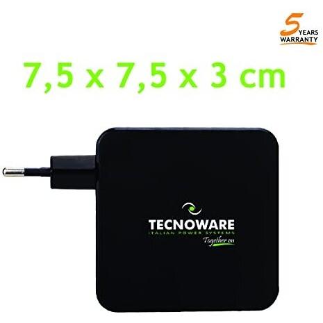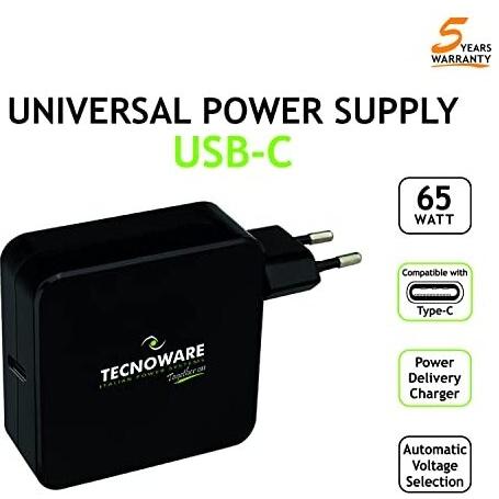 Tecnoware Caricatore Universale con porta USB C 65W compatibile con ogni notebook dotato di porta USB C: Macbook Pro/Air, ASUS, Lenovo ThinkPad e Yoga, Samsung, Huawei Xiaomi Air