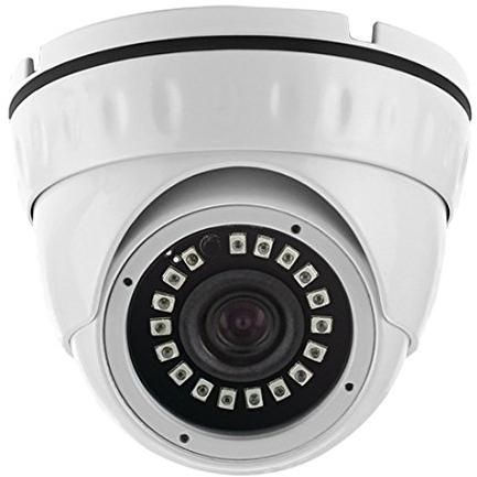 Telecamera a cupola bianca con sensore CMOS da 1 MP che registra video fino a 1280×720 pixel. Montata sul soffitto, dispone di infrarossi per la vi ...