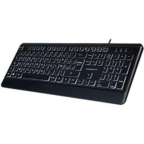 Tastiera Mediacom CX219 retroilluminata a LED bianca, layout italiano, tasti anti‑sudore e ergonomici; connessione USB 2.0 con cavo di alta qualità ...