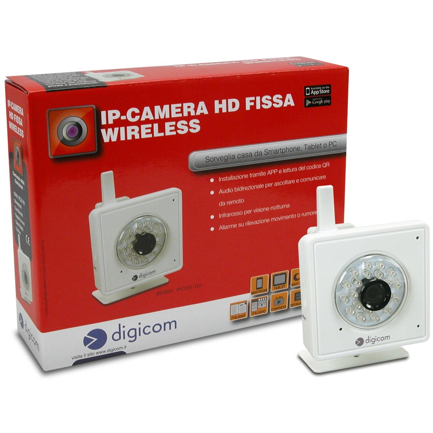 DIGICOM 8E4581 IP Camera HD Wireless per interni giorno e notte controllabile dal smartphone, tablet o PC, Bianca