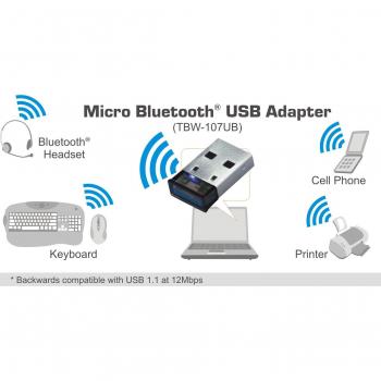 Il microadattatore USB TRENDnet TBW‑107UB trasforma il tuo computer in un hub Bluetooth 2.1+EDR, operando su banda a 2,4 GHz con portata di 10 m ...