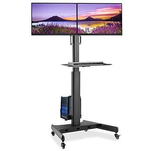 Techly 107463 Trolley da Pavimento con Mensola e Porta PC per 2 TV LCD/LED/Plasma 13-32'' Nero