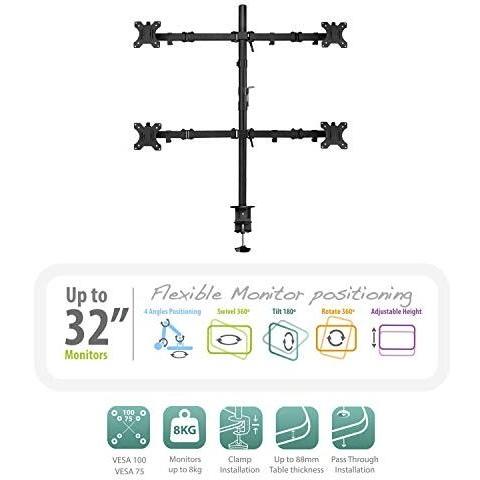 Supporto da scrivania con braccio articolato Ewent EW1514 per 4 monitor (10-32) - Girevole - Gestione cavi - Peso massimo 8 kg - VESA 100x100 mm