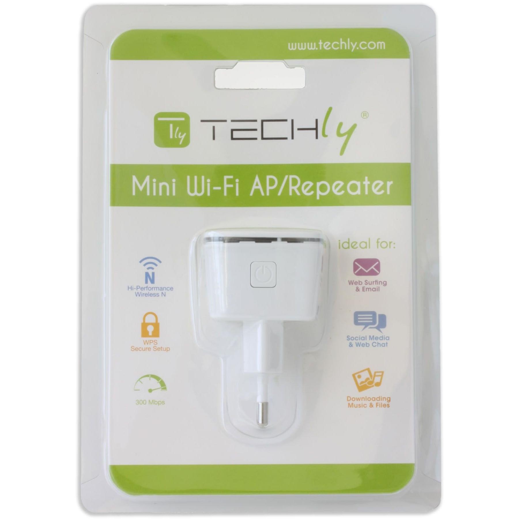 Mini Wireless WLAN Repeater 300 Mbit/s Wireless Wall Plug Amplifier (Techly Repeater7) White