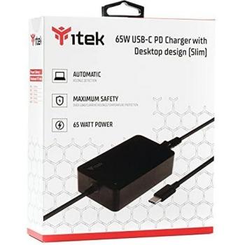 Itek Alimentatore Universale per Notebook e Dispositivi USB-C, PD - 65W, Slim Design, Nero