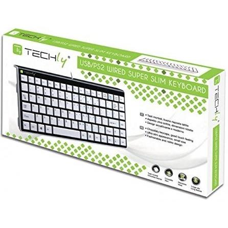 Techly PS2/USB Mini Keyboard White KB-100 IDATA KB-100WH - keyboards (Universal, Italian, Windows 2000, Windows 7 Home Basic, Windows 7 Home Premium, Windows 7 Professional, Windows 7 Starte, Black, White, PC/server)