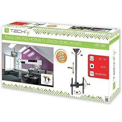 Techly 309333 Supporto Telescopico Universale a Soffitto per TV LED LCD 32-55" Nero