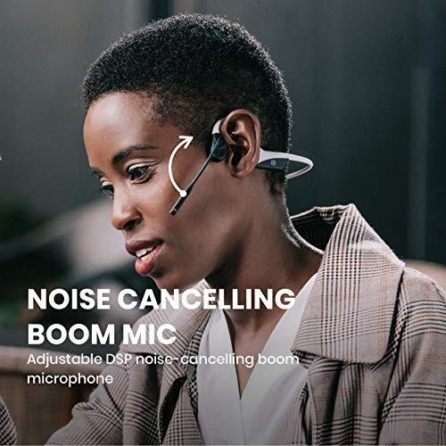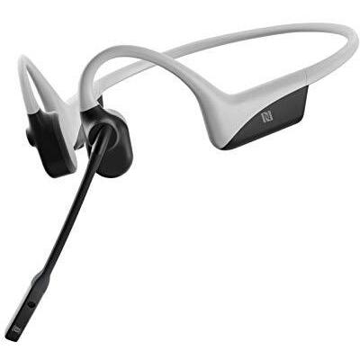 AfterShokz OpenComm Wireless Stereo Bone Conduction Bluetooth Headset with Noise-Canceling Boom Microphone for Office Home Business Trucker Drivers Commercial Use (White)