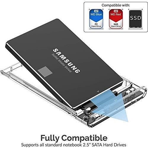 Sabrent Box Case Trasparente Tool-Free per Hard Disk Esterno SATA 2,5" a USB 3.0 [Ottimizzato per SSD, Supporta UASP SATA III] (EC-OCUB)