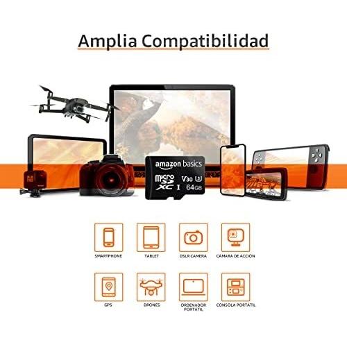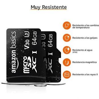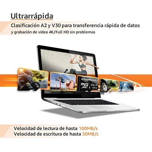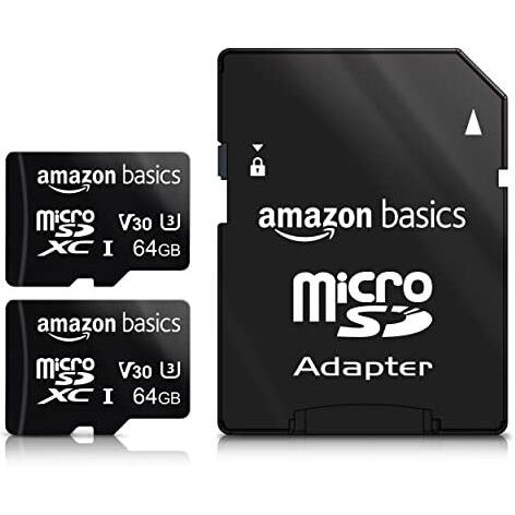 Amazon Basics MicroSDXC 64 GB con Adattatore SD, A2, U3, Velocità di Lettura