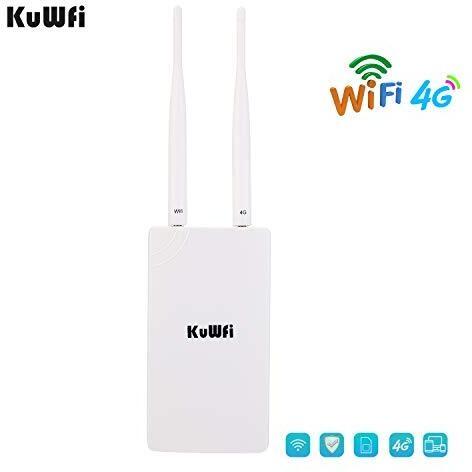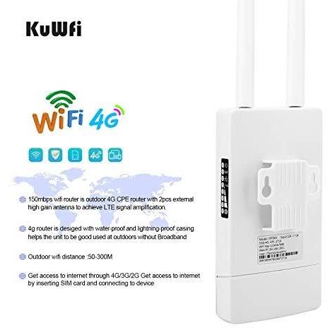 Router 4G LTE KuWFi 150Mbps 3G/4G LTE Router CAT4 con slot per schede SIM, funziona con telecamera IP o copertura WiFi esterna con antenna 2pcs, compatibile con 3 (Tre), Tim, Wind e Vodafone SIM card