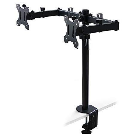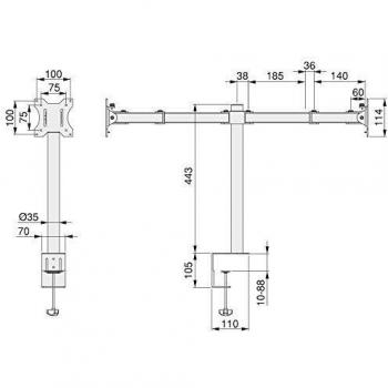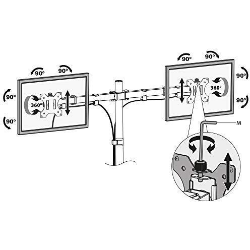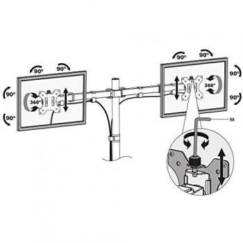 Supporto per monitor da tavolo inclinabile e girevole a 360°, doppio, acciaio, Verniciato nero - Emuca