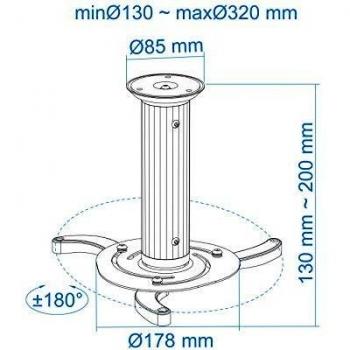 Supporto per proiettore in stile moderno, con braccio regolabile che permette di inclinare da -15° a +15° e ruotare in 360°. Realizzato in allumini ...