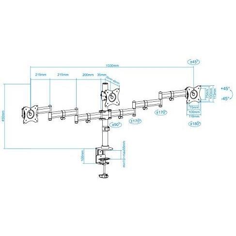Tooq Supporto Da Tavolo Per Tv/monitor 3 Bracci 13-27´´