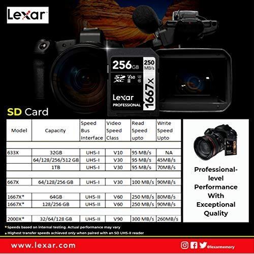 Lexar Professional SDXC 128GB 667x UHS-I (U3) V30 Velocity Class 100MB/s