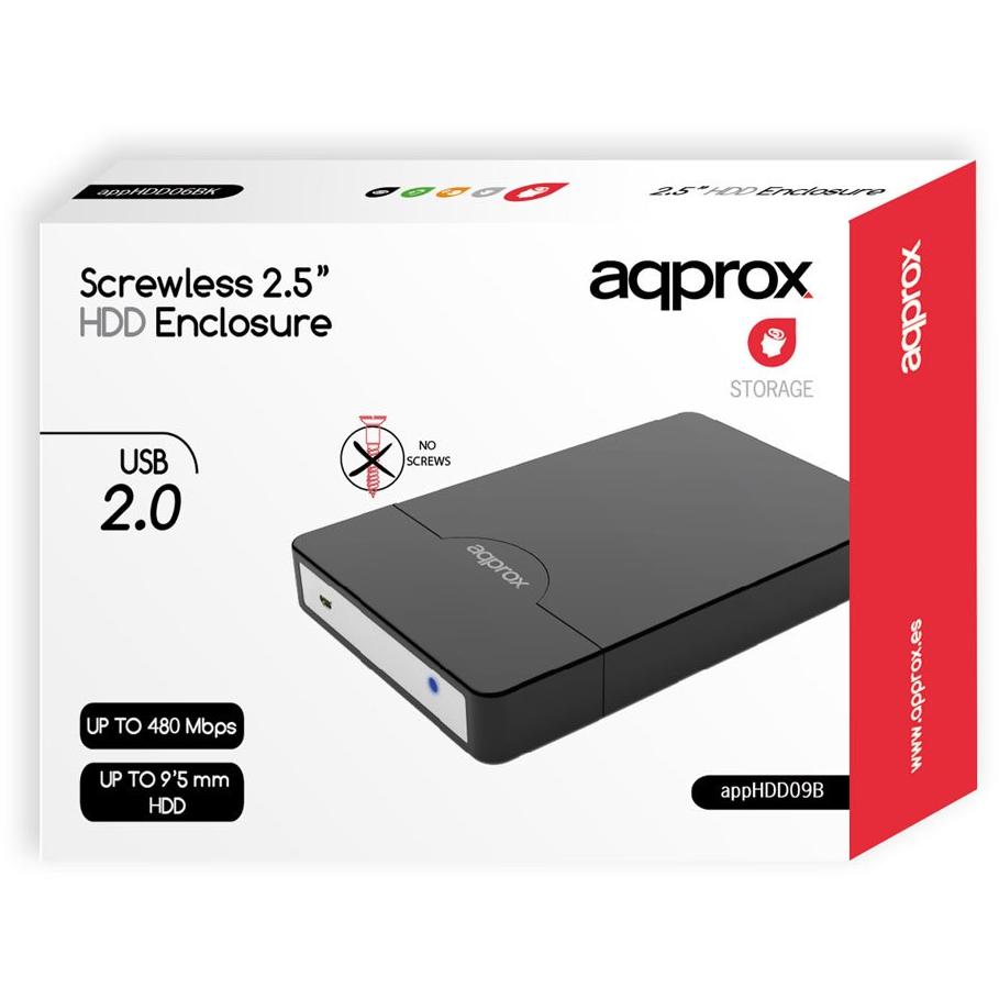 Custodia nera senza viti per disco SATA da 2,5″ che si collega tramite USB 2.0 e si alimenta dalla stessa porta. Con dimensioni di 142×81×22 m ...