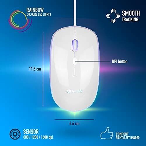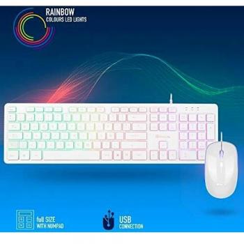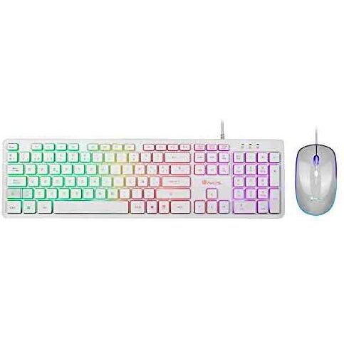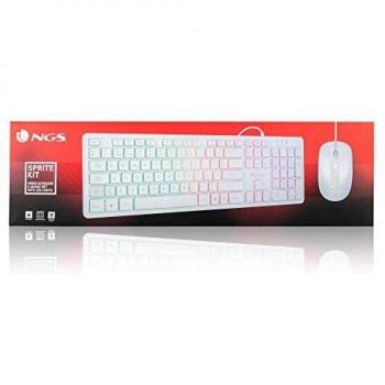 NGS Kit Tastiera e Mouse Cablato USB con Retroilluminazione RGB, Risoluzione 1600 DPI, Colore Bianco