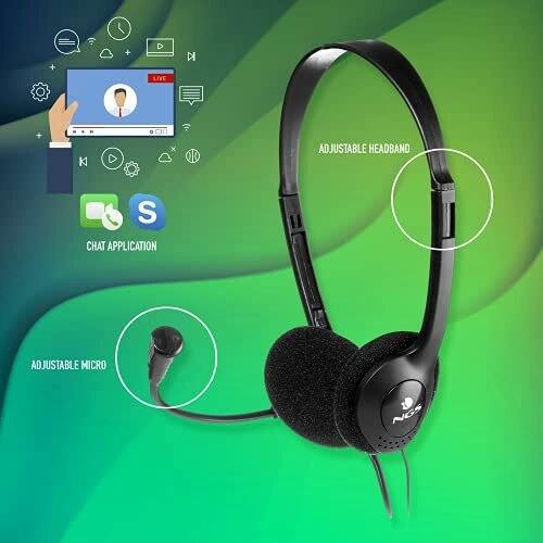 NGS MS103 PRO - Cuffie con Microfono per PC con Controllo del Volume, Cuffie con Cavo e Conessione Jack 3,5mm