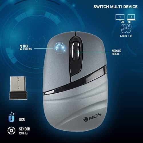NGS - ASH DUAL mouse Ufficio Ambidestro RF senza fili + Bluetooth Ottico 1200 DPI