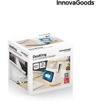 InnovaGoods - Caricabatterie Wireless Con Supporto-portaoggetti E Lampada A Led Usb 5 In 1 Desking Innovagoods