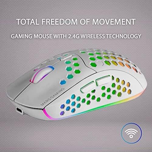 MARSGAMING MMW3W - Mouse Gaming Wireless RGB Flow - Ultraleggero 79g - 3200DPI - Bianco