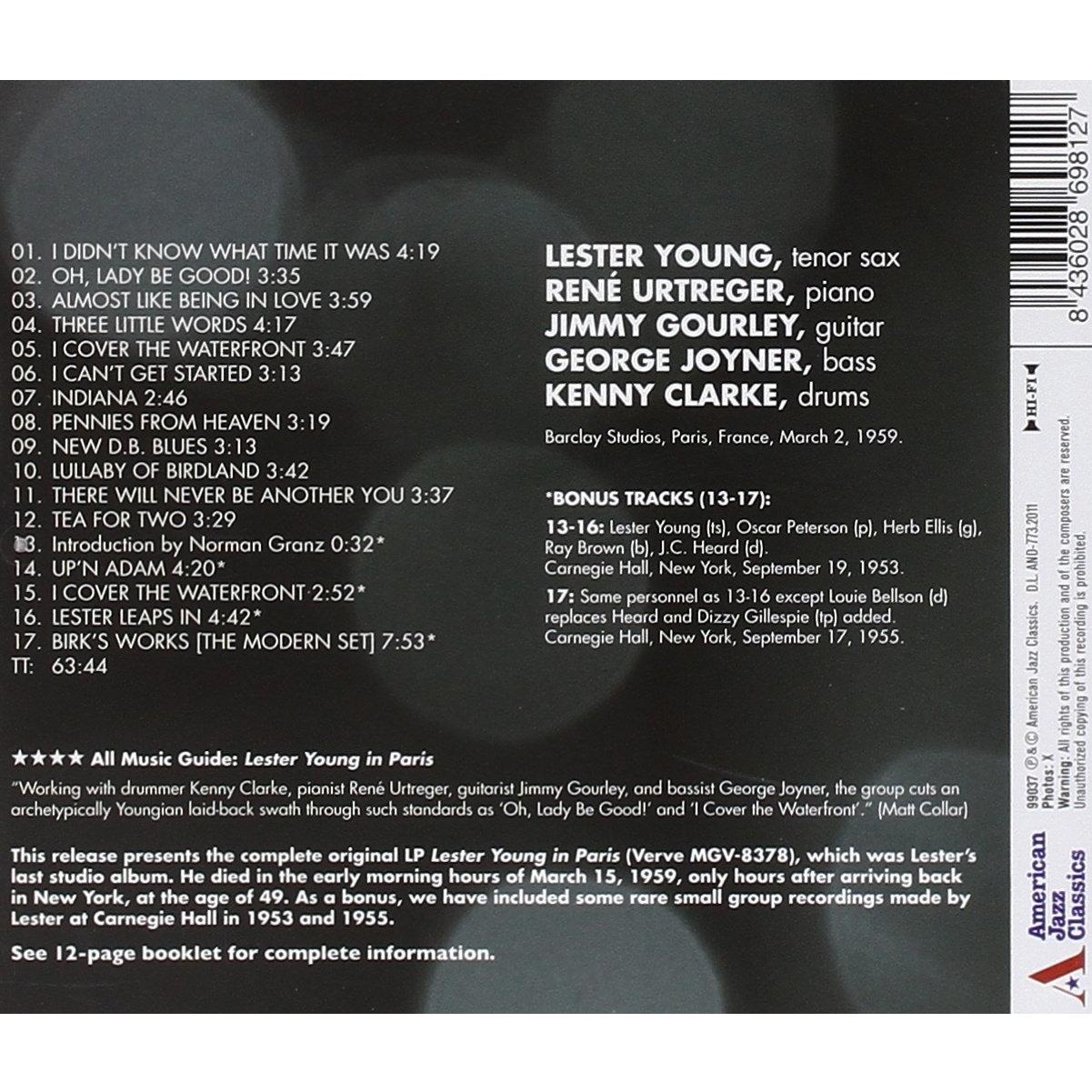 Un CD che porta l’ascoltatore in una passeggiata notturna per le strade di Parigi, dove Lester Young al sax si fonde con un ritmo swing leggero e im ...