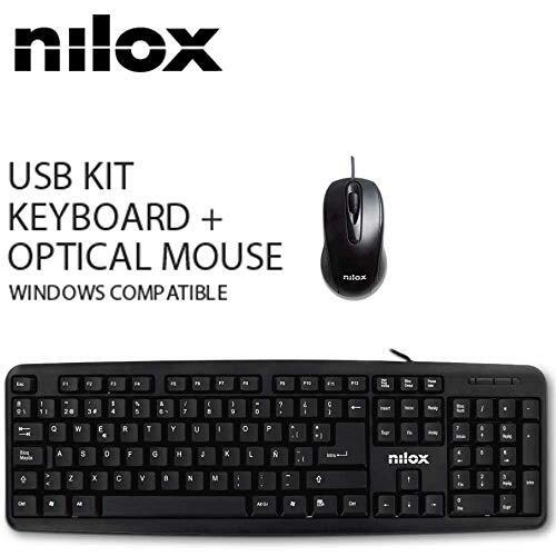 NILOX - KIT TECLADO RATON ESP tastiera Mouse incluso USB QWERTY Spagnolo Nero