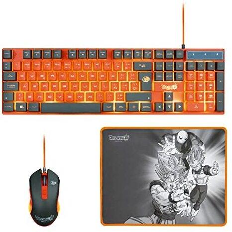 FR-TEC - PC Dragon Ball Super PACK Tastiera + Mouse + Tappetino USB Grigio, Arancione