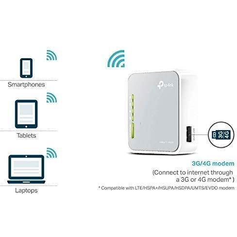Router portatile TP‑Link TL‑MR3020 trasmette Wi‑Fi N a 2,4 GHz con velocità fino a 150 Mbps, dispone di porta USB per modem 3G e porta Ethe ...