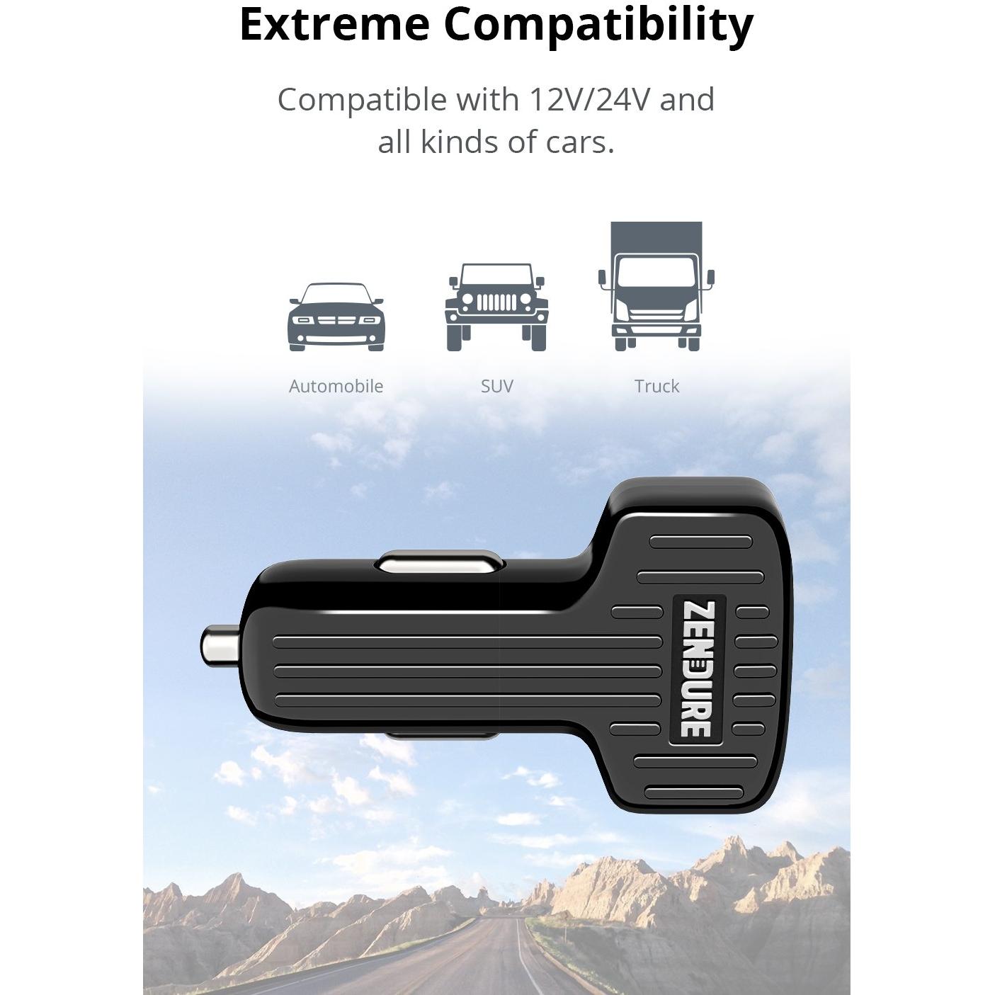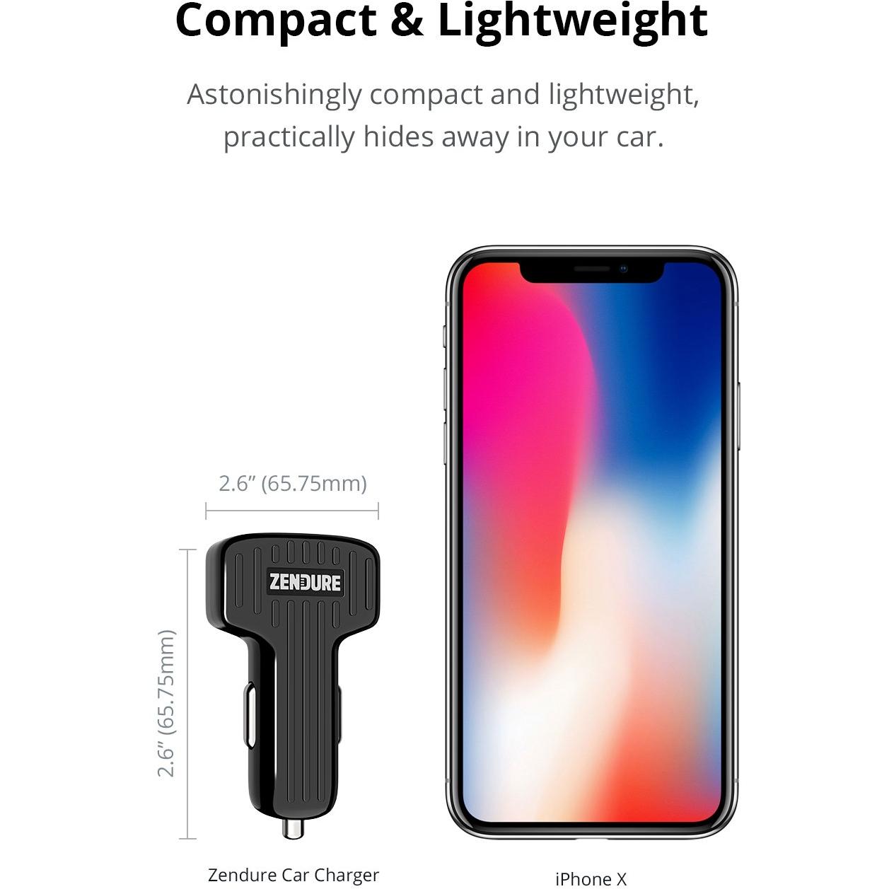 Zendure 2-Port Car Charger, Adattatore per auto, Nero