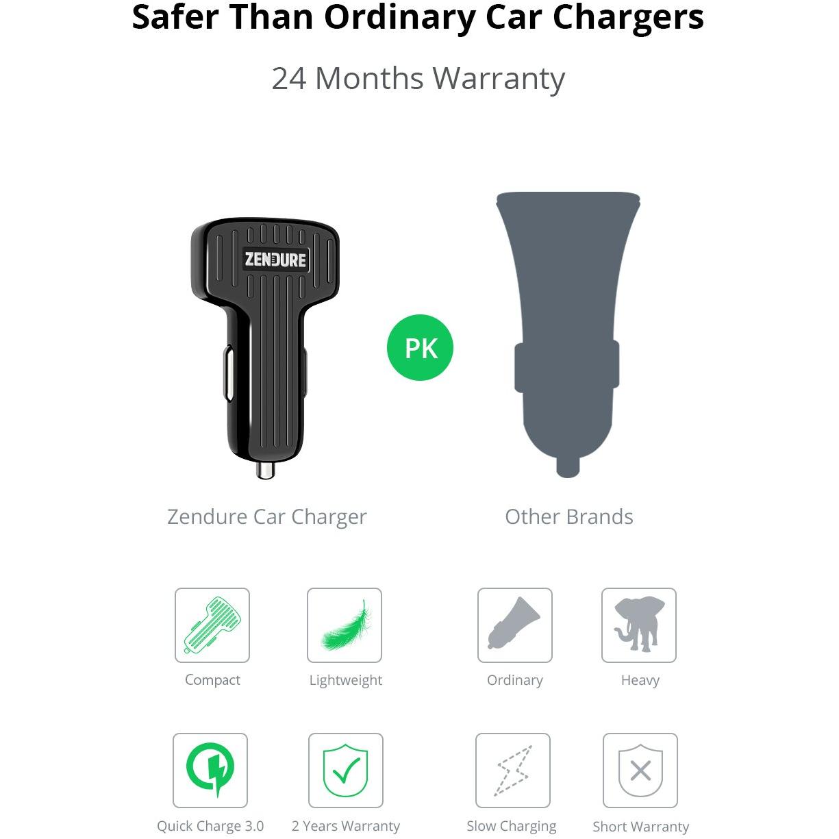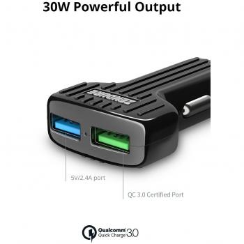 Caricabatteria Auto Zendure 30W QC3.0 con Dual USB – Nero
