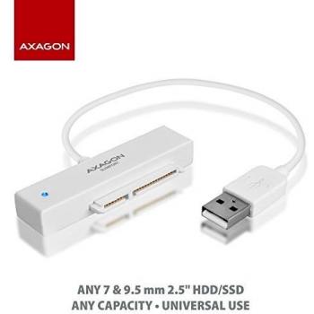 Axagon ADSA-1S6 Adattatore SLIMPort, USB 2.0, 2.5" SSD/HDD, SATA - con custodia (2.5"), Case per hard disk, Bianco
