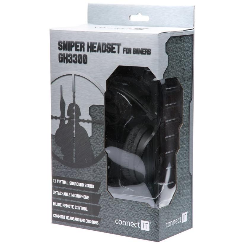 Connect IT SNIPER GH3300 PC/Gaming, stereofonico, ad archetto, nero, USB, con cavo (Cablato), Cuffie da gaming, Nero