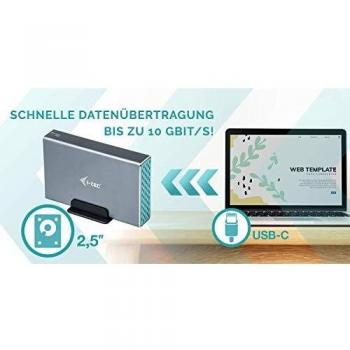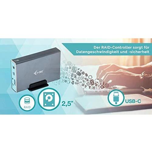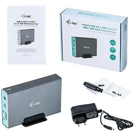 Enclosure esterno grigio per HDD/SSD SATA 2,5″, supporto RAID e porta USB‑C 3.1 Gen 2 con trasferimento fino a 10 Gb/s. Alimentazione CC 5 V ...