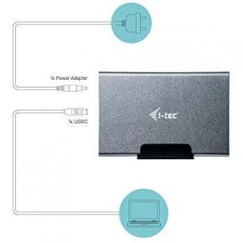 I-TEC CAMYSAFEDUAL25 2.5" Enclosure for HDD/SSD with SATA and USB-C/A Interfaces, Gray