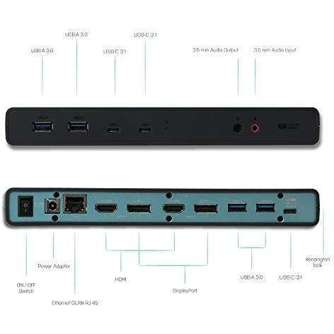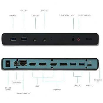 I-tec USB 3.0/USB-C 5K/2x4K Docking Station Universale 2x HDMI 2x DisplayPort 1x GLAN 4x USB 3.0 2x USB-C 1x Audio Dentro/Fuori Power Delivery K-Lock, ITA Spina di Alimentazione