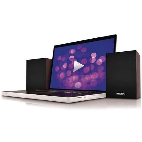 Altoparlanti Philips SPA20/12 in nero/marrone, compatibili con notebook e PC, offrono audio chiaro a 3 W RMS su due canali. Si collegano via USB o j ...