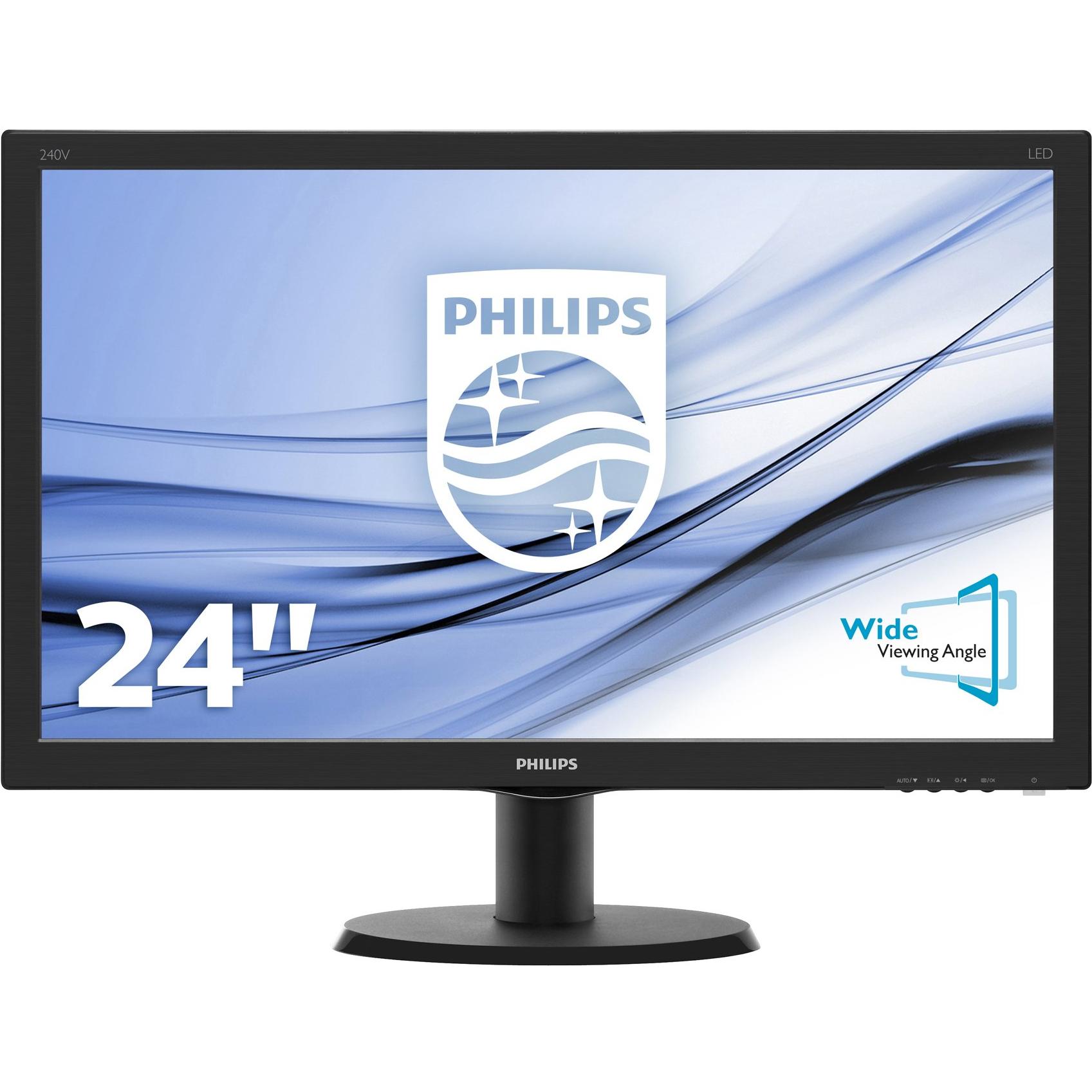 Philips 240V5QDSB Monitor 24" LED IPS Full HD, 1920 x 1080, 5 ms, HDMI, DVI, VGA, Attacco VESA, Nero